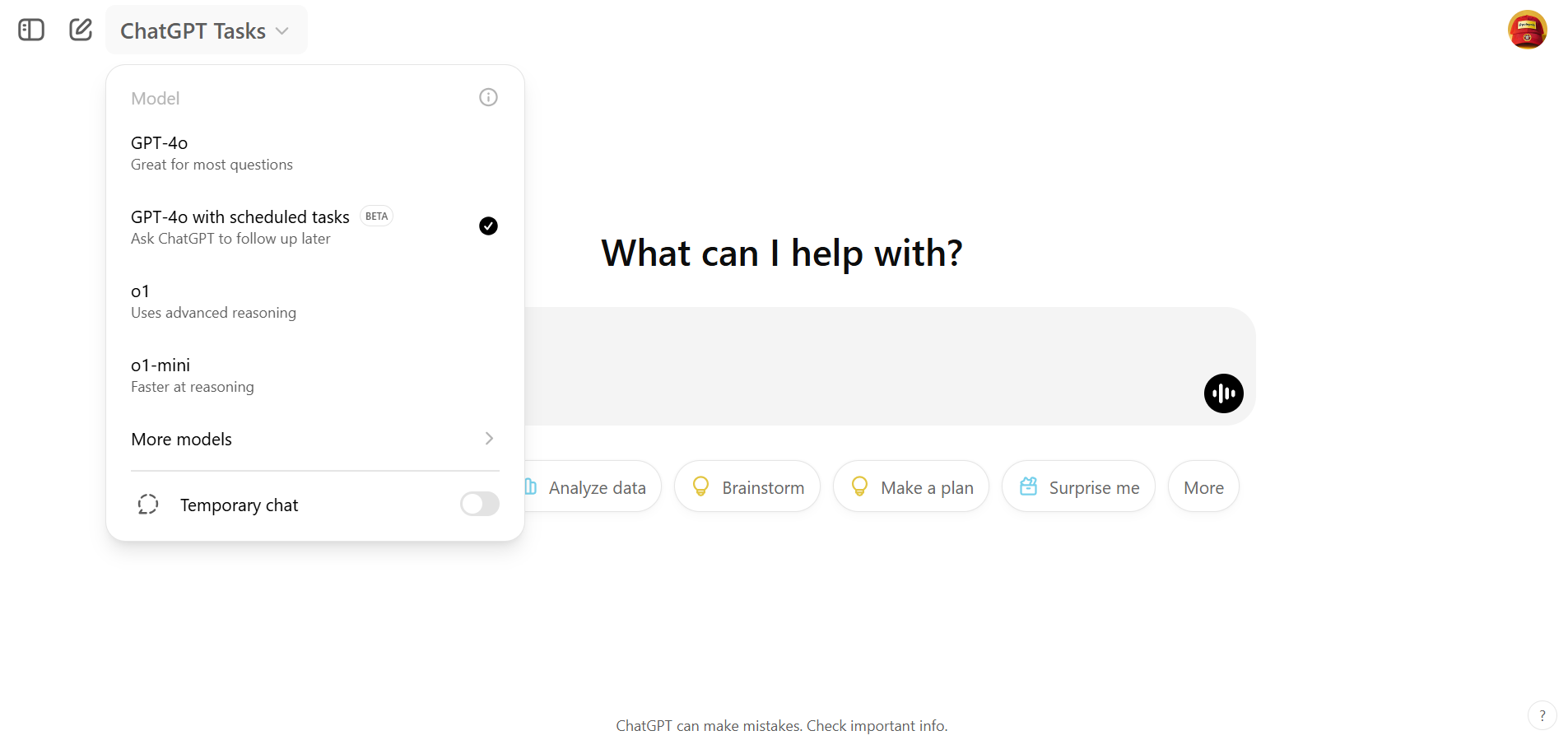 또한 Tasks는 Pro 모델에서는 지원되지 않고, 일반 ChatGPT 모델에서 지원돼요.