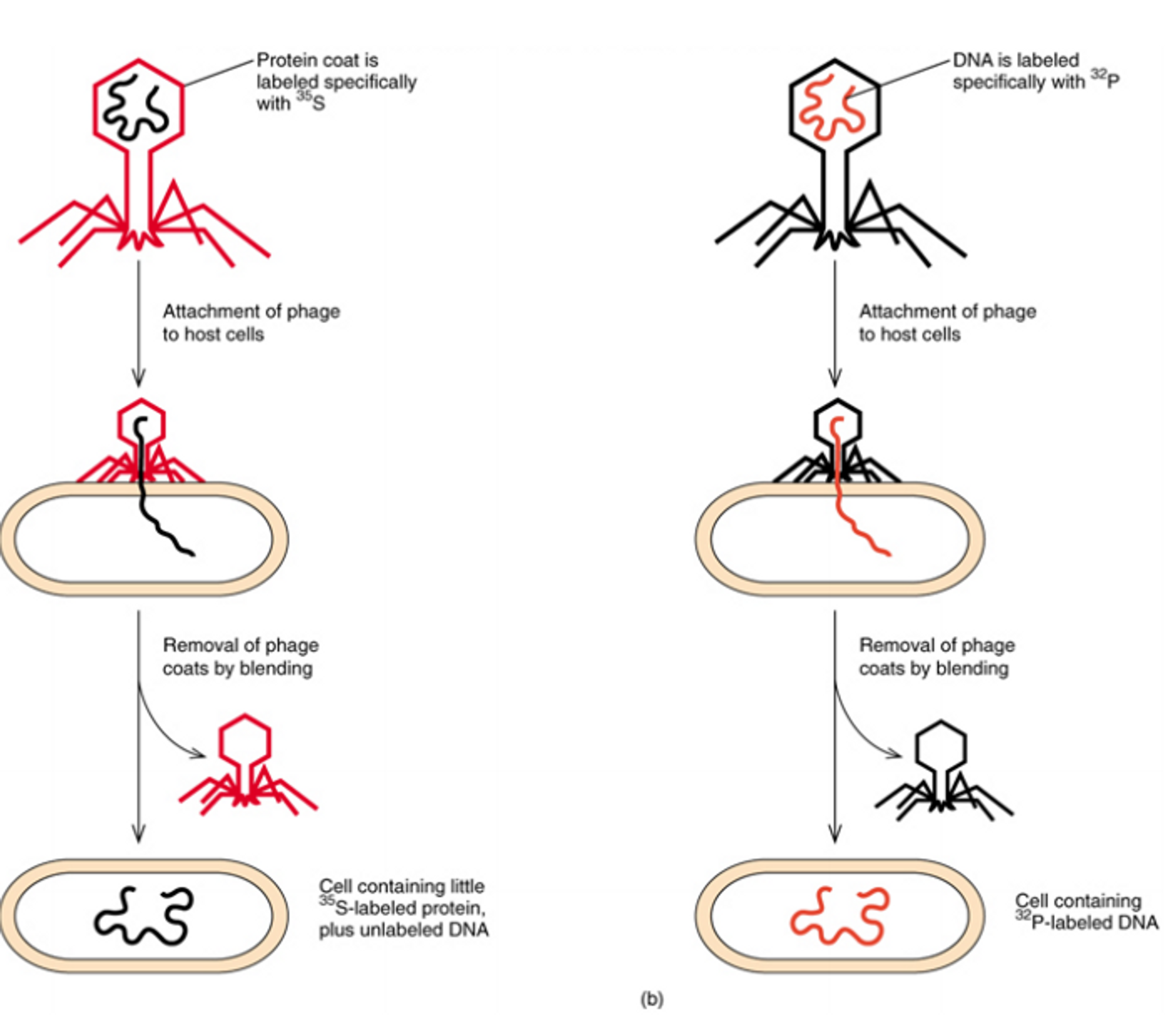 또 1952년에 hershey와 Chase가 수행한 bacteriophage infection 실험을 통해 DNA가 유전물질임이 다시금 확인됨. (허쉬-체이스의 실험)