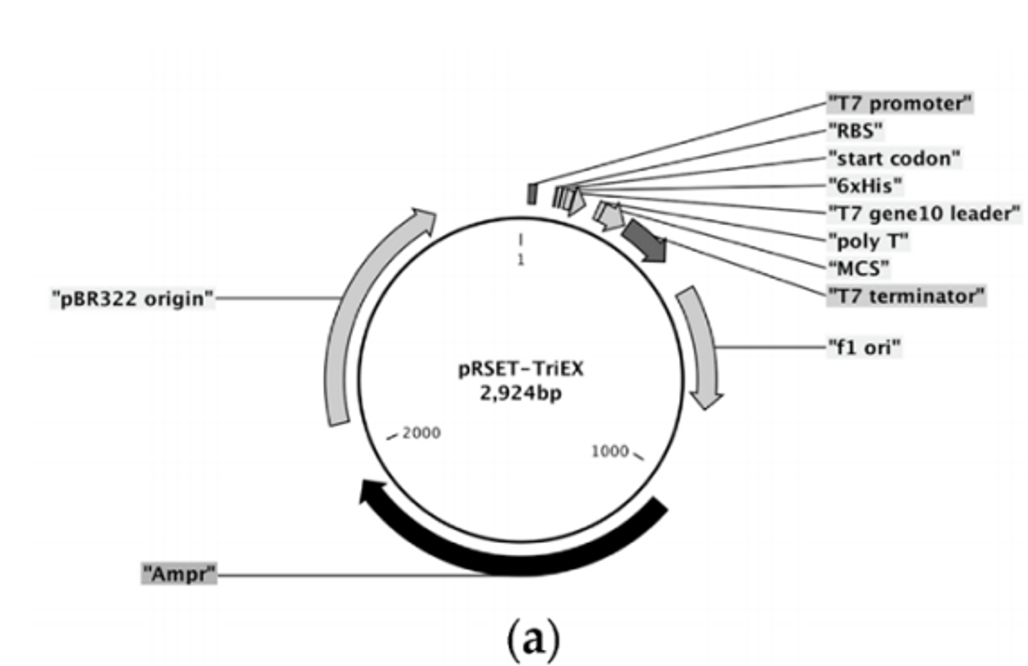 다음으로 이 예시를 살펴보자. 이 vector는 pRSET-TriEX라는 녀석이며 이 녀석에도 아까와 마찬가지로 각종 vector의 요소들이 다 포함되어 있음.