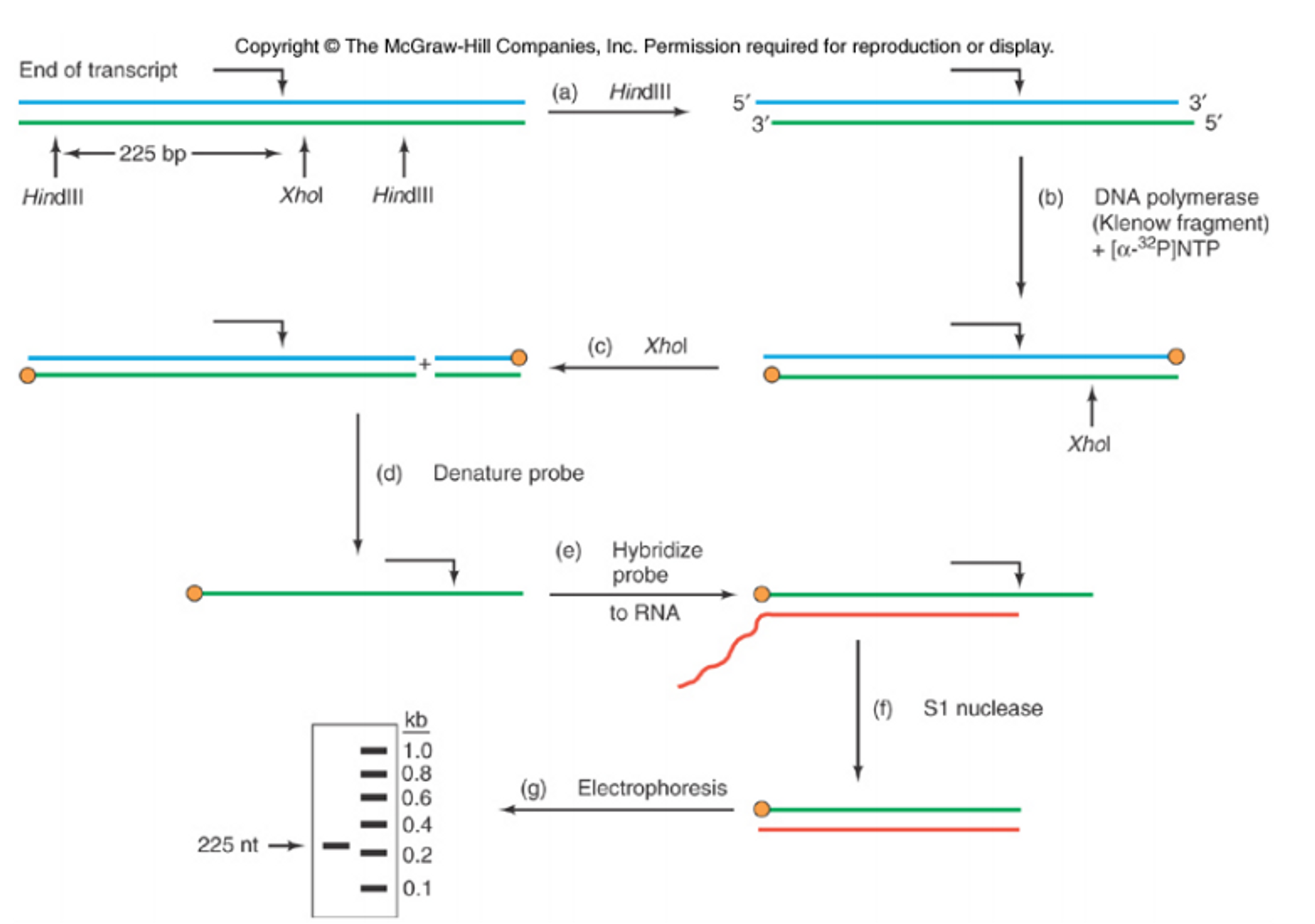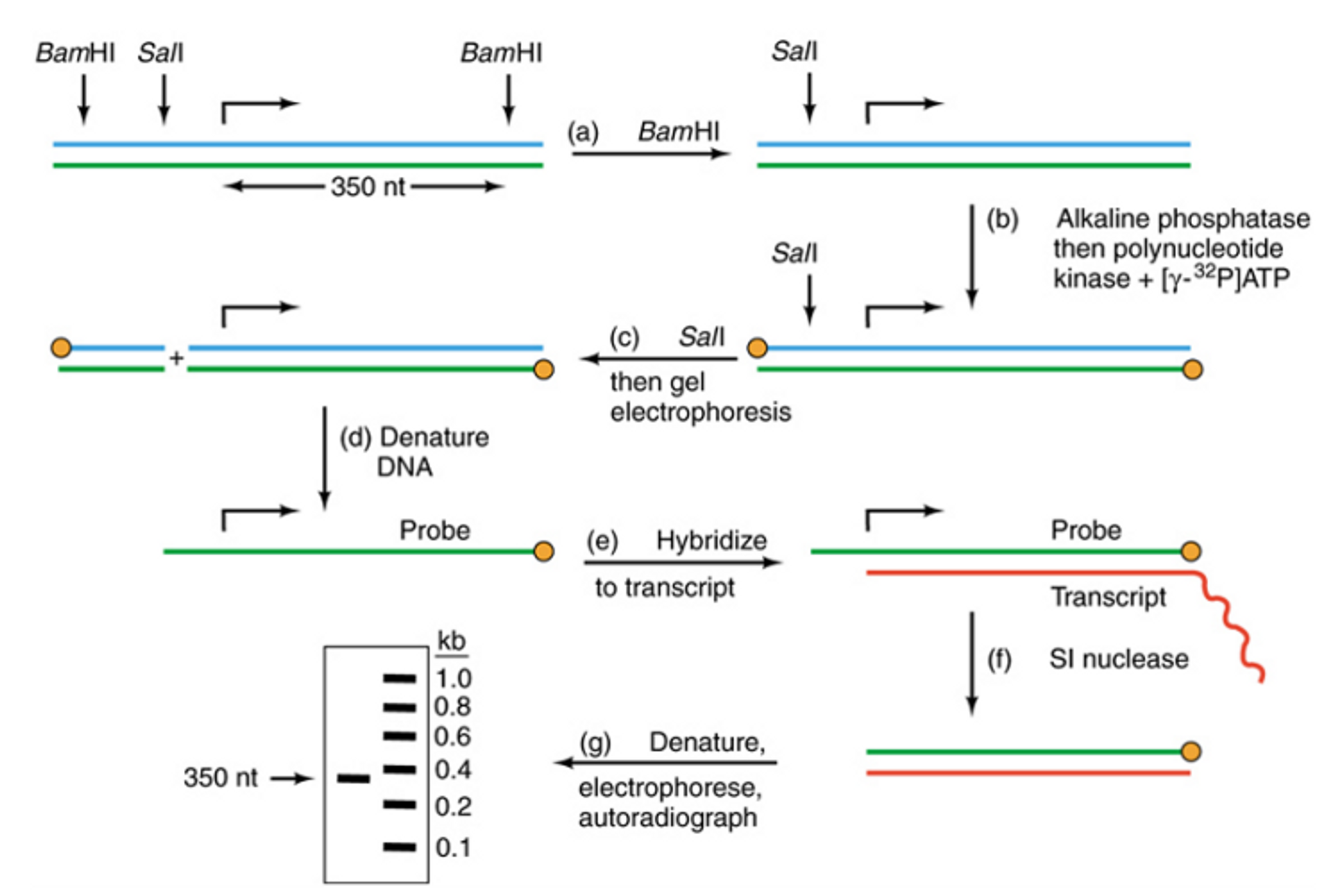 위 그림에 5' end S1 mapping의 과정이 나타나 있음. 하나하나 살펴보자.