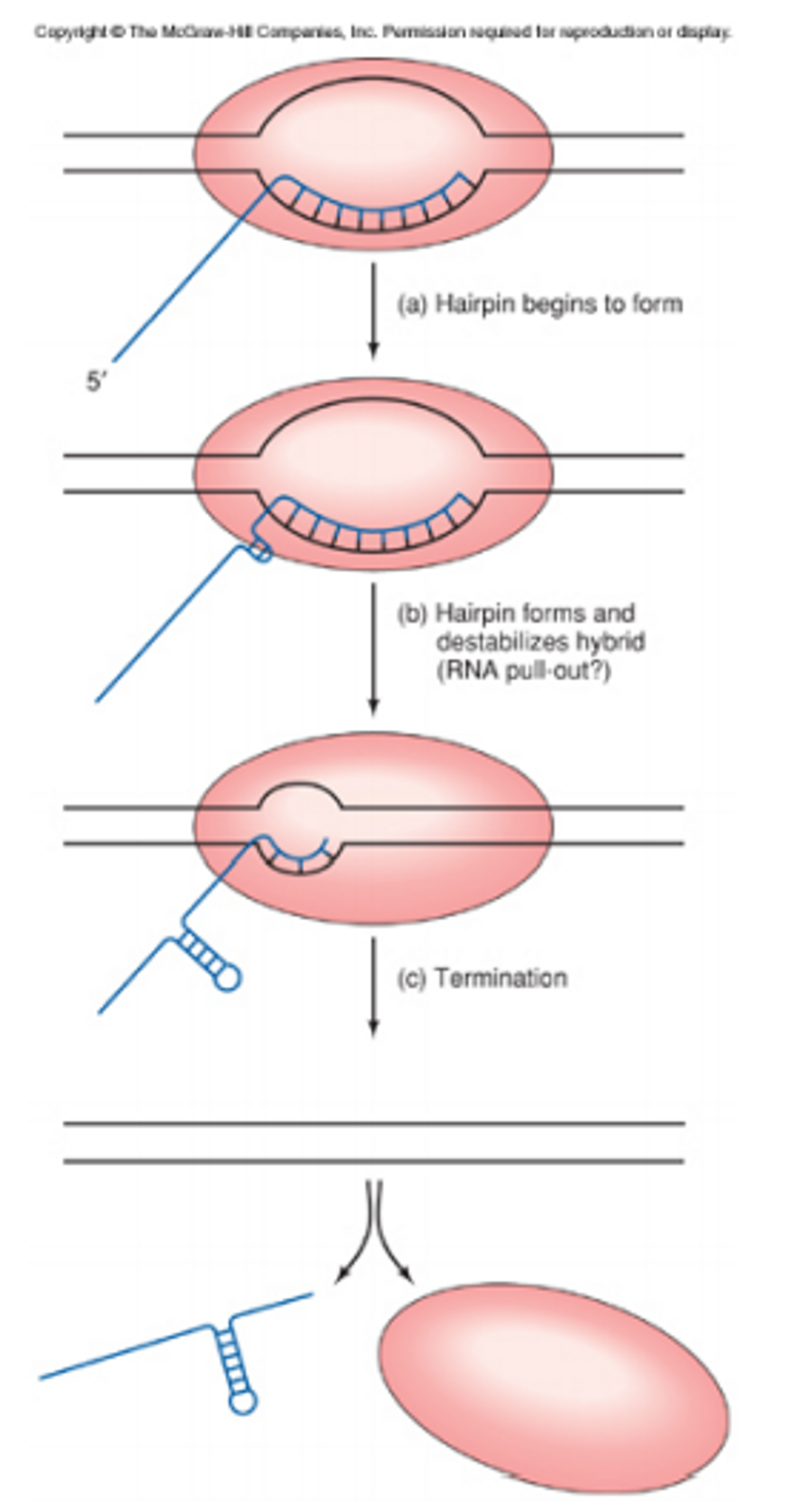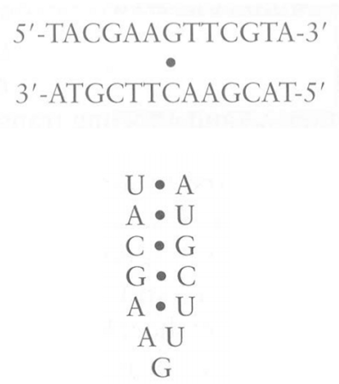 이 때 이 inverted repeat이 전사되어 위 그림 아래와 같이 RNA가 되면 이 RNA 서열은 스스로 접혀서 hairpin 구조를 형성하게 됨.