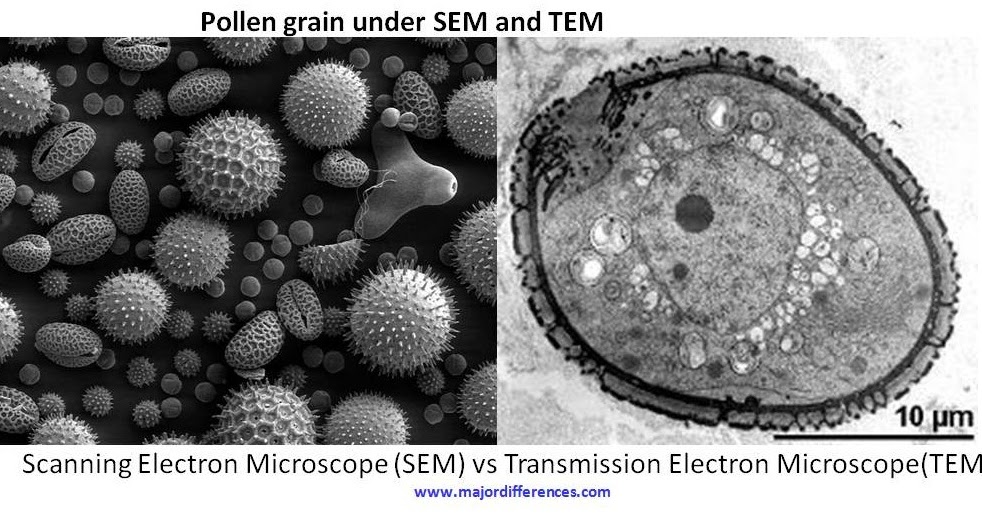 TEM은 전자가 시료를 직접 통과하기 때문에 시료의 내부 단면을 볼 수 있는 반면 SEM은 물질의 표면에서 반사된 전자가 detection되기에 시료의 외부 표면밖에 볼 수 없어요.