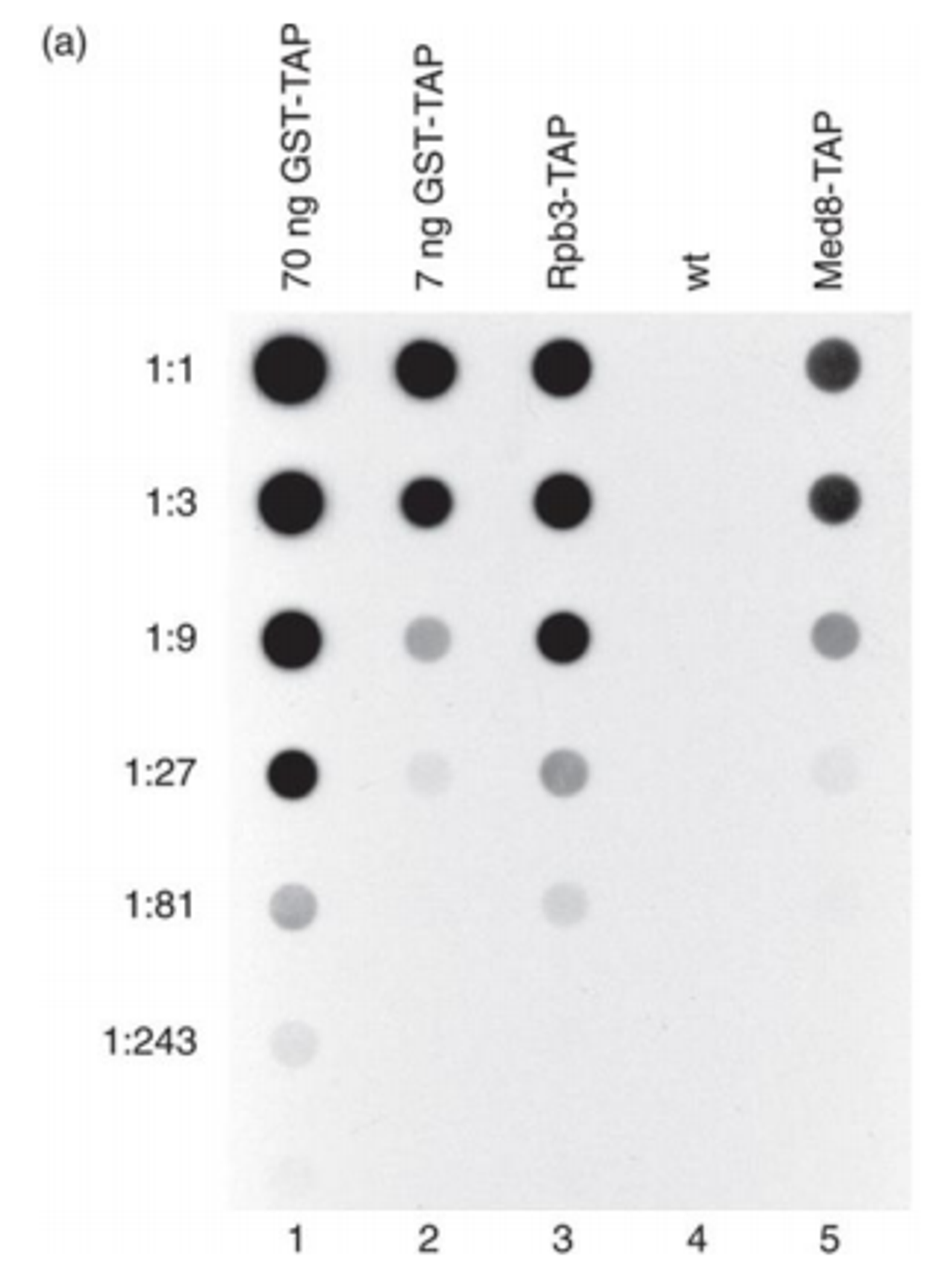 위 실험에서는 TAP-tag라는 것을 사용하였는데, 각각의 holoenzyme subunit에 이 TAP-tag를 달아둠. 이 TAP-tag는 protein A에 달라붙으며, 이번에는 이 protein A에 결합 가능한 녀석이 peroxidase임.