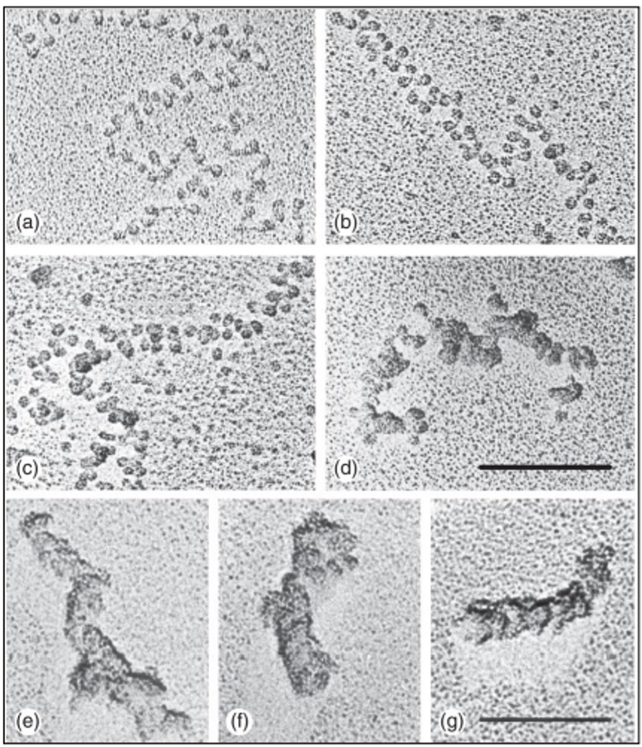 사실 아직도 in vivo 환경에서 30nm fiber가 관찰된 적은 없음. 다만 in vitro에서는 쉽게 관측 가능한데, 30nm fiber를 in vitro에서 관찰한 실험 결과는 아래와 같음.