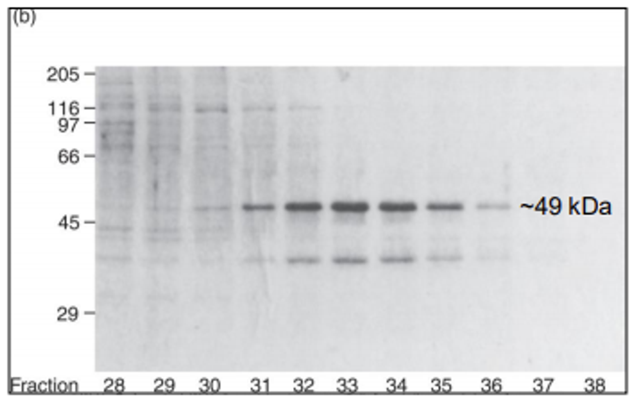 보면 30~37까지의 fraction이 실제로 polyadenylation 활성을 가지고 있다는 것을 알 수 있음. 이에 이 부분에 포함된 단백질을 PAB II(poly A binding protein II)라고 이름붙임. (이 당시 이미 PAB I이 발견되어 있었기 때문에 불가피하게 PAB II로 이름붙임)