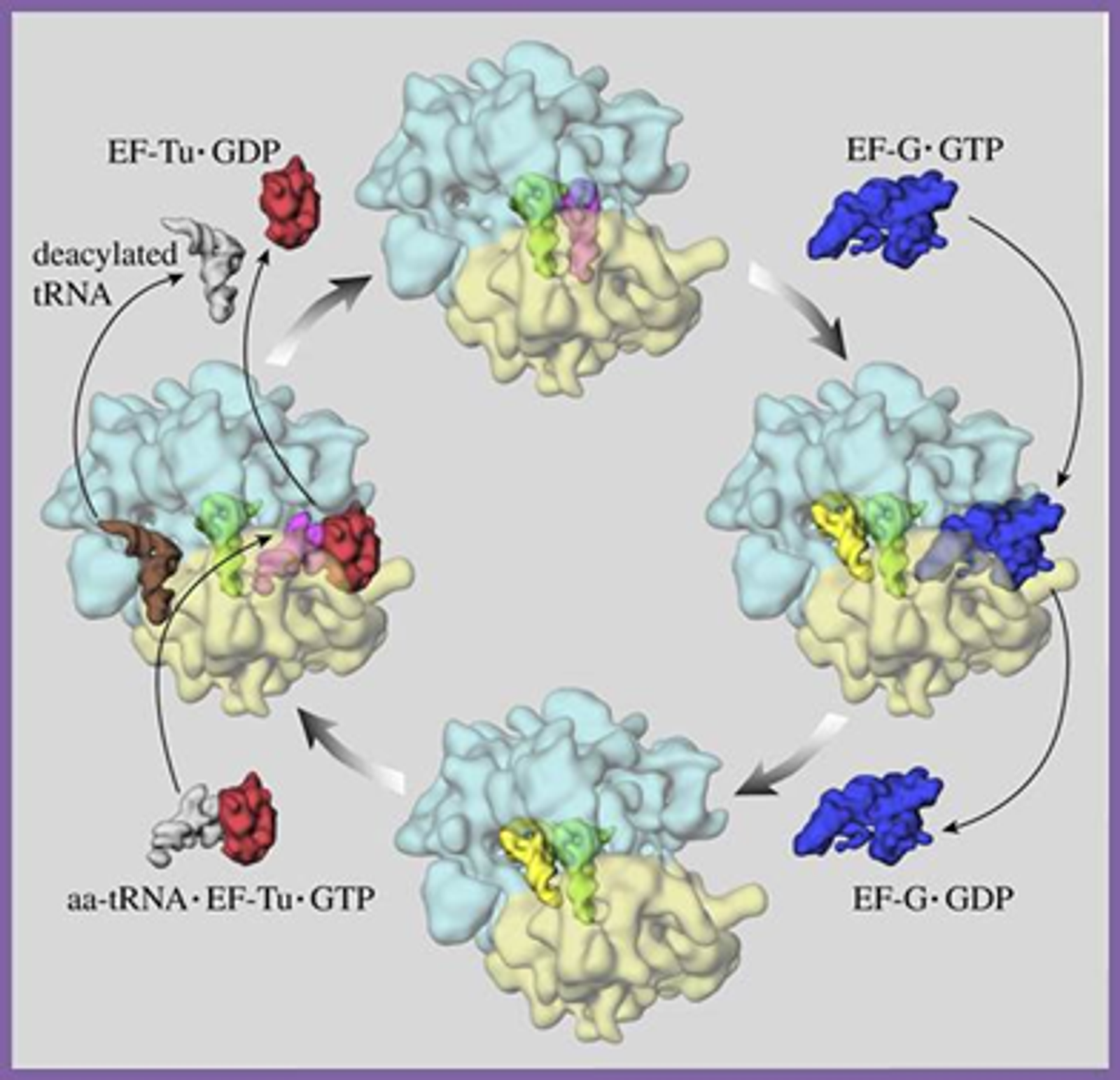 ribosome에 의한 protein 합성 과정은 아래와 같은 dynamic한 과정임.