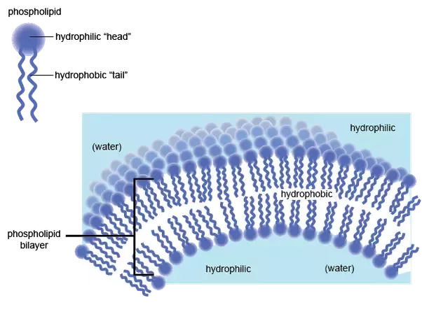 실제로도 친수성 머리는 바깥쪽 한 층만을, 소수성 꼬리는 안쪽 몸체 전부를 구성하므로 세포막의 전반적인 특성은 소수성이라 할 수 있어요.