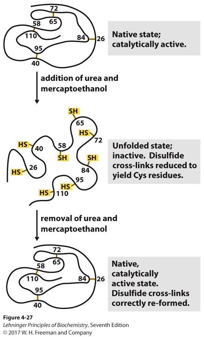 위 그림에 나타나 있는 것은 Chris Anfinsen이 ribonuclease를 이용해 수행한 refolding experiment임.