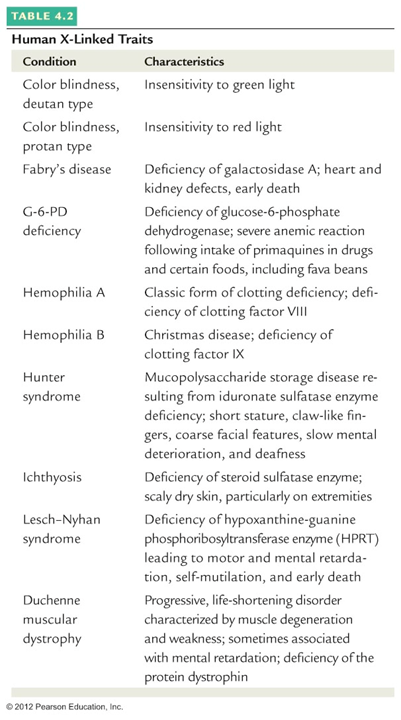 이외에 사람에게서 관찰되는 다양한 X-linked trait이 위 표에 나타나 있으므로 참고하면 좋을 것임.