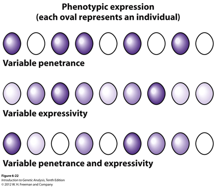 phenotypic expression에 관여하는 환경적 요인에 대해 이해하기 위해서는 penetrance(침투도)와 expressivity(발현도)라는 개념들에 대해 이해하고 있어야 함.