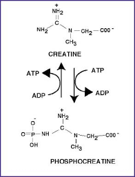 크레아틴은 크레아틴 인산(Creatine phosphate) 형태로 근육에 저장되었다가, ATP가 고갈되면 빠르게 ATP를 재생시켜주는 역할을 해요.