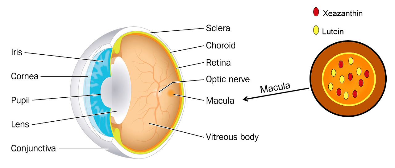 하지만 이 황반이 빛에 계속 노출되면 점차 손상되는데, 이때 루테인이 자외선이나 블루라이트 등으로부터 망막을 보호해주는 역할을 해요. 특히 노화와 관련된 황반변성(AMD)을 예방하거나 그 진행을 늦추는 데 큰 도움이 되는 것으로 알려져 있죠.