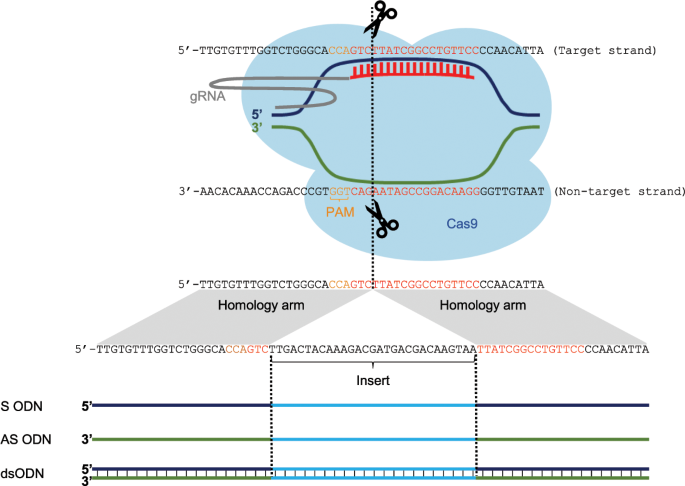 이 상동 팔이 실제 유전체에서 자른 부위와 유사해야 세포가 HDR 메커니즘을 활성화할 수 있거든요. 이 팔의 길이는 보통 각각 50~1000bp까지 다양하게 설계되고, 실험 목적에 따라 조절돼요.