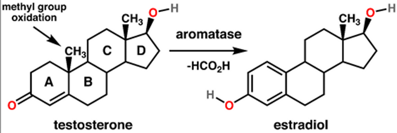 위 그림과 같이 testosterone을 estradiol로 바꿔주는 녀석이 바로 aromatase라는 효소임. 그런데 T가 높을 시 aromatase의 활성이 높아지게 되고, 그 결과 estradiol에 의해 난소의 형성이 촉진되어 famale이 됨. 한편 T가 낮을 시 aromatase의 activity가 낮아지게 되고, 그 결과 testosterone에 의해 정소 형성이 촉진되어 male이 됨.