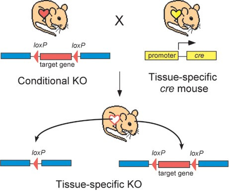 가장 널리 사용되는 방식 중 하나는 조직 특이적 Cre 마우스를 활용하는 거예요. 즉, Cre recombinase 유전자를 특정 조직에서만 발현되는 프로모터 아래에 둔 트랜스제닉 마우스를 만드는 방식이에요.
