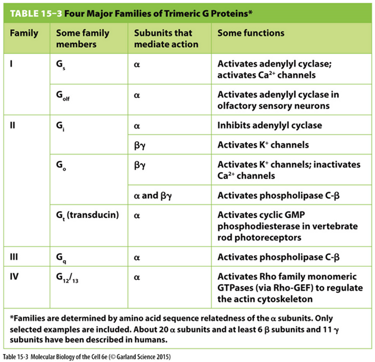 한편 위 표에는 G protein의 다양한 종류와 관련 기능들이 나타나 있으므로 참고해주세요.